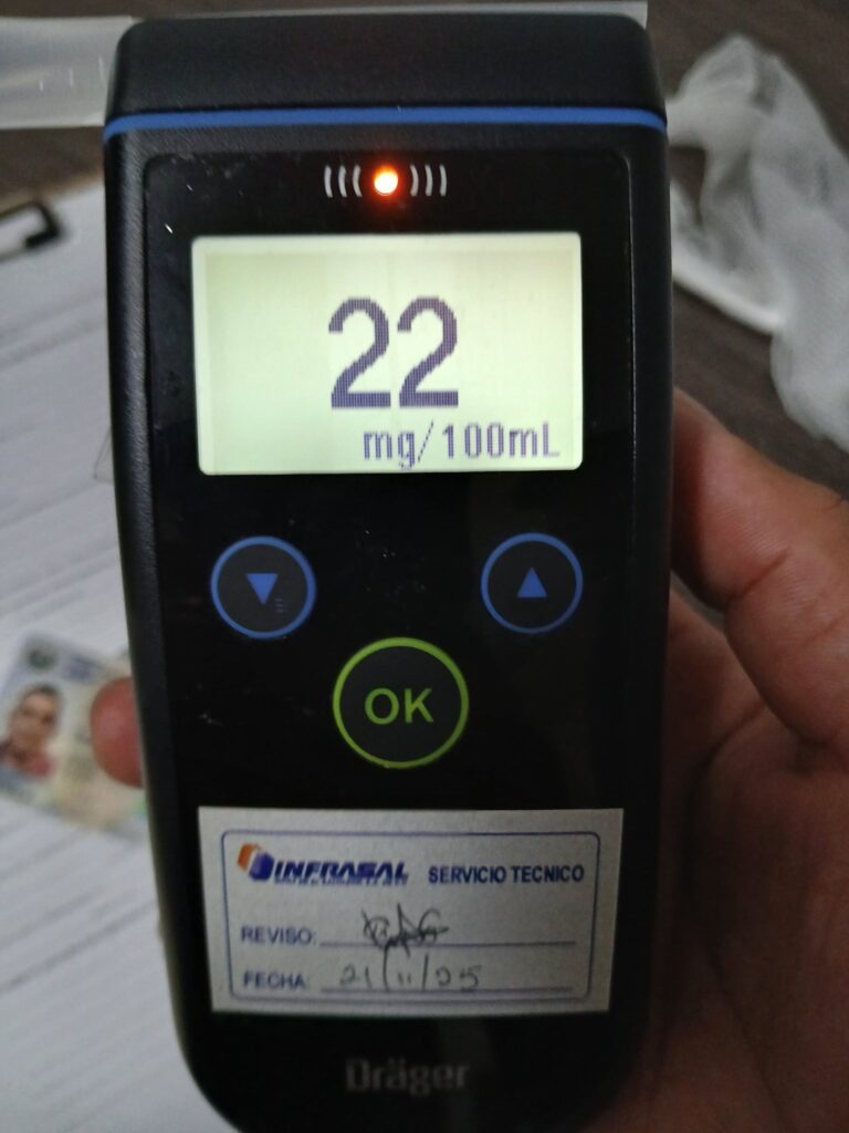 La prueba de alcotest de Márquez Hernández determinó 22° de alcohol.