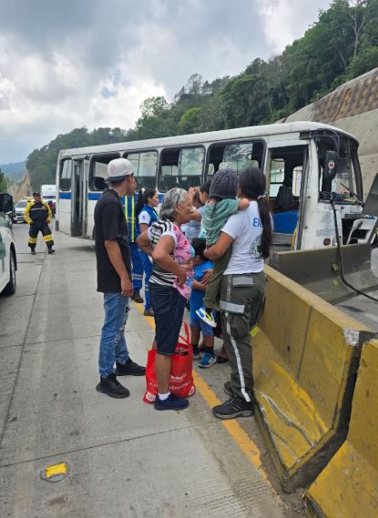 Cuatro personas resultaron lesionadas tras un siniestro vial registrado en la autopista Los Chorros, a la altura de la exbáscula. De acuerdo con información preliminar, el conductor de una coaster de la ruta 4L perdió el control de la unidad, impactando contra los separadores de la vía.