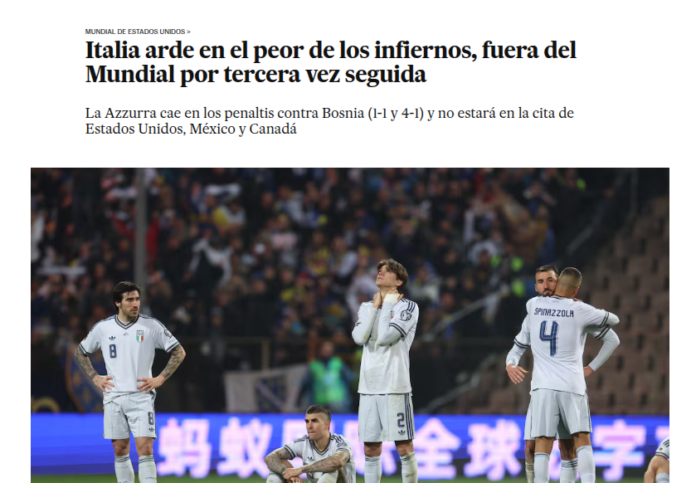 La prensa deportiva del país reaccionó con dureza. Diversos medios calificaron la eliminación como un “fracaso total” y una “vergüenza nacional”, apuntando no solo al resultado en el repechaje, sino a una crisis estructural que, según analistas, viene afectando al fútbol italiano desde hace varios años.