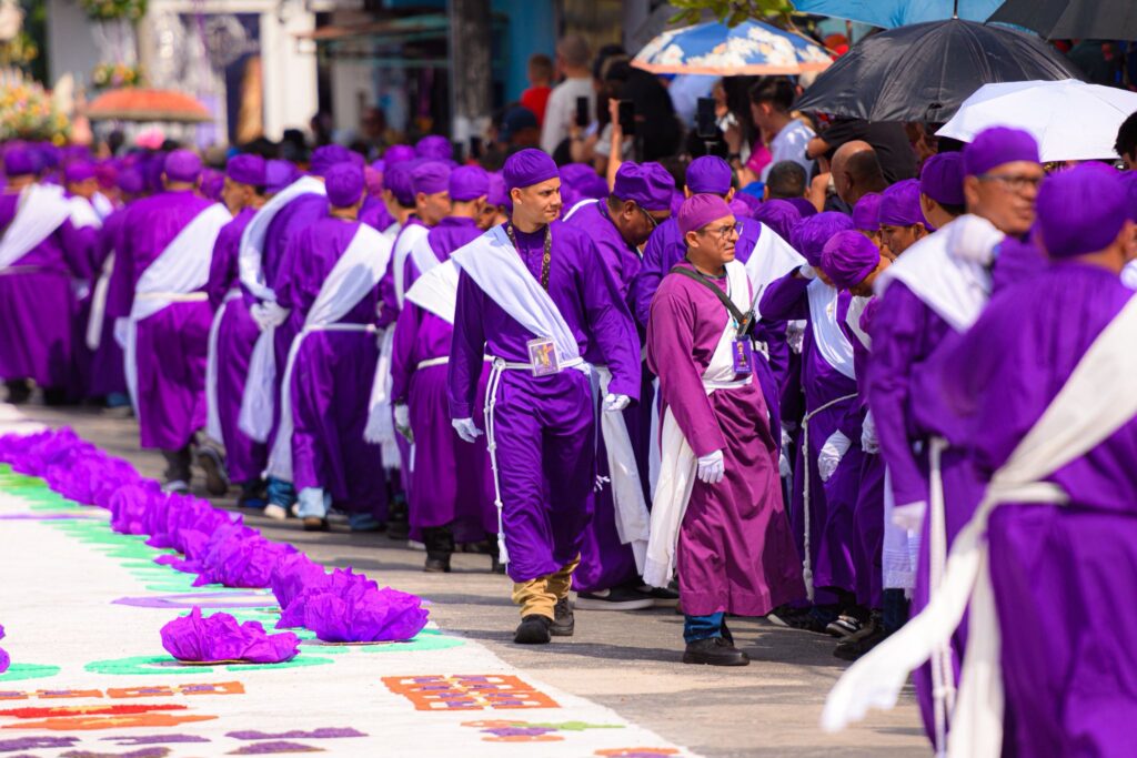 Durante el recorrido, las calles se transforman en un escenario de reflexión donde el tiempo parece detenerse. Alfombras, rezos y el sonido acompasado de las andas crean una atmósfera única que envuelve tanto a locales como a visitantes.
