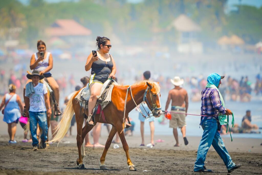 Cientos de turistas nacionales y extranjeros disfrutan del sol, la arena y el mar, en un ambiente familiar que caracteriza a este reconocido punto turístico de La Libertad Costa. Entre las principales atracciones, los visitantes pueden realizar paseos a caballo a la orilla de la playa, crear figuras en la arena o disfrutar de las olas, convirtiendo la experiencia en una opción ideal para compartir en familia.